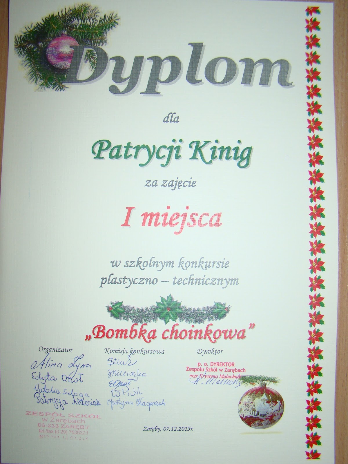 7. Konkurs mikołajkowy „Stroik świąteczny” – Zaręby, 07 grudnia 2015 roku